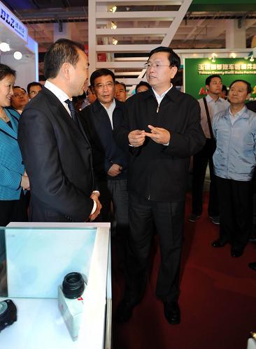 9月26日,中共中央政治局委員、國務(wù)院副總理張德江在北京參觀第四屆中國國際汽車零部件博覽會。新華社記者 李濤 攝