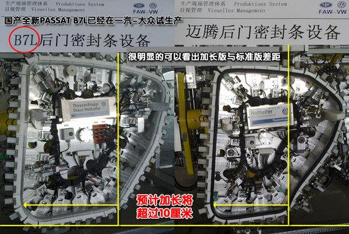 目前,加長版的PASSAT B7已經(jīng)在一汽-大眾長春的第二工廠進(jìn)行了試生產(chǎn),在PASSAT B6(邁騰)的生產(chǎn)線上,我們發(fā)現(xiàn)了標(biāo)有“B7L”字樣的后門密封條設(shè)備。與目前在產(chǎn)的標(biāo)準(zhǔn)軸距版邁騰相比,僅后門的長度就增加了10厘米左右,并且我們從工作人員那里也獲得了“B7L”是加長邁騰的肯定答案。由此可見,全新PASSAT B7加長版落戶一汽-大眾已成定局。