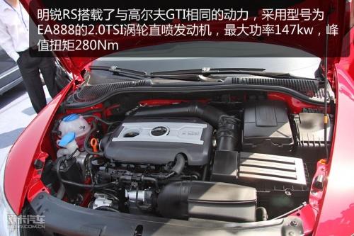 明銳RS搭載了與高爾夫GTI相同的發(fā)動(dòng)機(jī)和變速箱,動(dòng)力上采用EA888系列的2.0TSI渦輪直噴發(fā)動(dòng)機(jī),最大功率147kw,峰值扭矩280Nm,同樣匹配型號為DQ250的六速DSG雙離合變速器,這一動(dòng)力組合用在高爾夫GTI上的加速成績?yōu)?.1秒。