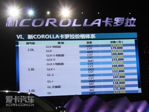 此次上市的新卡羅拉除了1.6L和1.8L兩款車型外,還增加了2.0L車型,此外新卡羅拉1.8L和2.0車型配備了CVT變速箱。這次上市的新車總共包含10款,價格為從12.38萬元到19.98萬元。