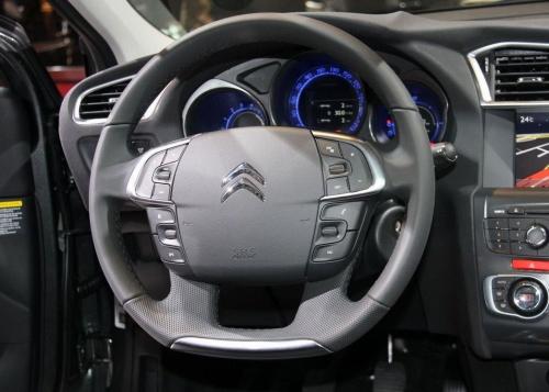 2011款雪鐵龍C4的內(nèi)飾相比現(xiàn)款車型變動(dòng)較大,儀表盤不再特立獨(dú)行地?cái)[放在中控臺的上方,而是“回歸”到了方向盤的后方,并且也從“三合一”式的顯示方式改為了傳統(tǒng)的獨(dú)立顯示。儀表盤依舊采用了電子顯示技術(shù),加上黑色與淡藍(lán)色交叉輝映的燈光效果,科技味道更加濃厚。