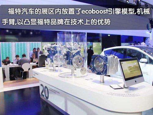 福特汽車在這次巴黎車展現(xiàn)場從面積上來說還是不小的,但是在展區(qū)內(nèi)的設(shè)計以及各個展示區(qū)域的布局上與國內(nèi)近兩次大型國際車展的布局和功能沒有區(qū)別。由于福特正在積極宣傳他們的ECOboost增壓加直噴引擎,所以福特展區(qū)內(nèi)引擎占據(jù)了重要的位置。