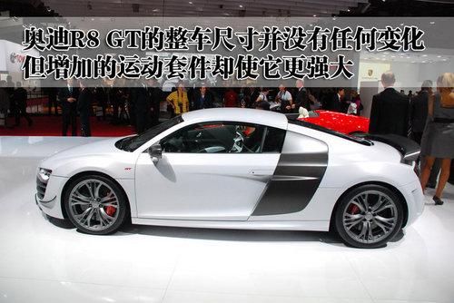 在本月初開幕的巴黎車展上,奧迪展臺上最為耀眼的當屬奧迪R8 GT了,這款超級跑車不僅僅擁有昂貴的價格,而且更加重要的是它只限量生產333臺。奧迪R8 GT與普通的R8車型相比,不僅采用了更多的運動套件,而且車身很多地方都采用了輕量化處理。據(jù)了解,奧迪R8 GT的售價為25.6萬美元,約合人民幣174.5萬元左右。
