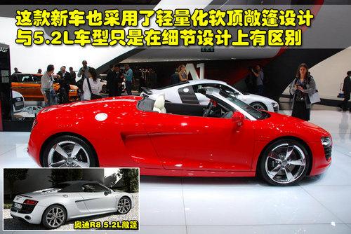 作為奧迪品牌旗下的超級跑車,R8敞篷版所搭載的5.2升FSI V10發(fā)動機已經讓很多人非常動心了。隨后,奧迪R8敞篷版將降低門框,推出搭載4.2升FSI V8引擎的新產品。在今年的巴黎車展上,奧迪R8 4.2L敞篷版已經正式亮相,隨后將首先在歐洲開售,預計價格約合人民幣113萬元左右。