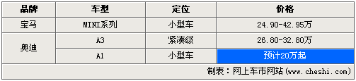 由于定位明顯低于同門師兄奧迪新A3,而A3的起售價格為26.80萬起,競爭對手MINI系列價格區(qū)間出現(xiàn)在24.90-42.95萬內(nèi),起價低于A3系列車型的最低售價。綜合以上兩個因素來推斷,奧迪全新A1車型有可能以20萬元入市,如果實現(xiàn),奧迪這個國際豪華品牌在國內(nèi)的產(chǎn)品價格將會再創(chuàng)新低。