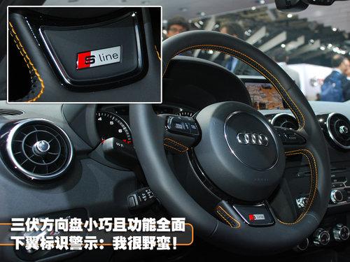 方向盤是車主最長(zhǎng)接觸愛(ài)車的地方,A1也把這里當(dāng)作彰顯它特堵特性的位置。真皮包裹的質(zhì)感很棒,橙色的縫線經(jīng)過(guò)內(nèi)側(cè)輪廓得到強(qiáng)化。兩個(gè)側(cè)翼設(shè)計(jì)有多功能按鍵,為用戶提供了方便安全的操作,下翼吧“S line”標(biāo)識(shí)再次嵌入,時(shí)刻提醒駕駛者這臺(tái)A1擁有著不平凡的身份和勁道。
