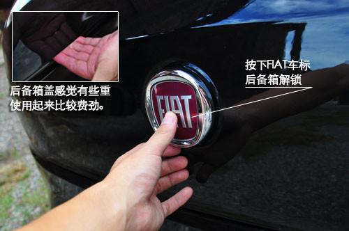 后備箱開啟采用了電磁感應按鈕,稍用力按壓FIAT標志即可開啟一個角度,設計頗為精巧。后備箱的容積并不算大,擱下一個旅行背包已經(jīng)占據(jù)了1/3的體積,后排座椅支持4比6放到,雖然不能完全放平,但是也為后備箱提供了更多空間?傊⿶偟暮髠湎鋺度粘J褂檬峭耆珱]有問題的。只是后備箱蓋感覺有些重使用起來稍稍有些費勁。