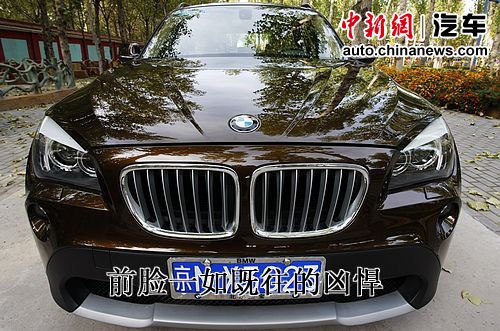 了解了X1的尺寸后,我們再來近距離觀察它的外觀和細(xì)節(jié)。X1正面巨大的雙腎進(jìn)氣格柵,上揚的天使眼大燈以及保險杠下部的銀色涂裝所傳達(dá)出來的仍然是寶馬一如既往的兇悍,機艙蓋上的棱線凸顯出力量感。