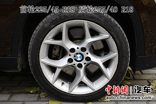 從側(cè)面看,X1與一輛傳統(tǒng)的SUV差異可就更大了,倒像是一輛轎車的旅行版。而這輛xDrive28i X1配備的18寸輪轂顯然不是為越野準(zhǔn)備的,前輪225/45 R18后輪255/40 R18的輪胎規(guī)格完全屬于公路操控的配置。