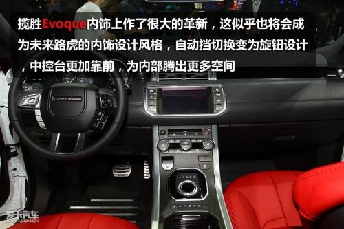 由于內(nèi)飾的圖片還沒(méi)有公布出來(lái),據(jù)猜測(cè)和三門(mén)版攬勝Evoque的內(nèi)飾風(fēng)格設(shè)計(jì)相同。至于配置方面,可能會(huì)有所調(diào)整,但是一些在三門(mén)版攬勝Evoque出現(xiàn)的配置將會(huì)延續(xù)到五門(mén)版車(chē)型上。譬如自動(dòng)泊車(chē)輔助系統(tǒng)、盲點(diǎn)監(jiān)控系統(tǒng)、停車(chē)預(yù)熱定時(shí)器裝置、無(wú)鑰匙進(jìn)入系統(tǒng)、可自動(dòng)調(diào)節(jié)的自適應(yīng)大燈系統(tǒng)、數(shù)字/衛(wèi)星電視與DVD播放系統(tǒng)、后座娛樂(lè)套件等豪華配置。