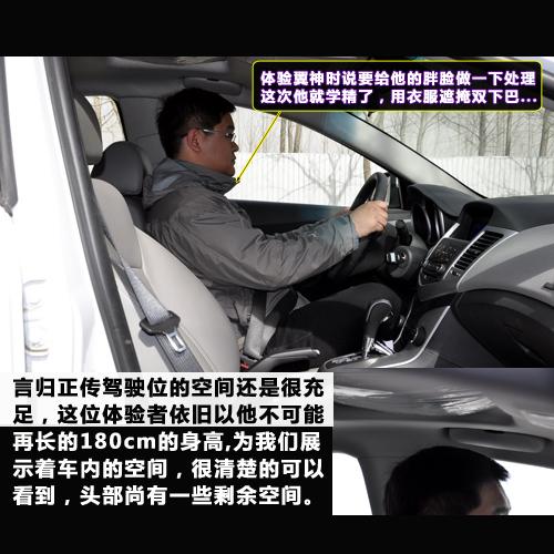 科魯茲前排空間相對還是充足的,身高180cm的旁人坐在其中,頭部尚有很大一塊的富余量。但后排空間就不那么樂觀了,頭部空間明顯沒有前排的充裕,如果前排同樣是180cm的駕駛者,調整座椅后,后排的膝部與座椅的空間不足一指。
