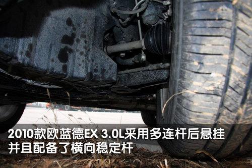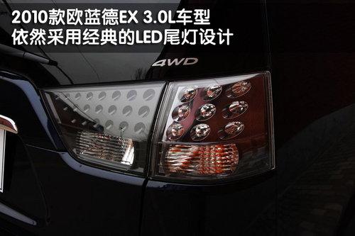 三菱2010款歐藍(lán)德EX 3.0L車型與其他排量車型相比,尾部的變化并不明顯,尾燈依然采用了傳統(tǒng)的LED設(shè)計(jì),全尺寸備胎采用后部底盤懸掛式配備。但歐藍(lán)德EX 3.0L車型尾部采用雙排氣管的設(shè)計(jì),畢竟排量大了。歐藍(lán)德EX 3.0L車型采用多連桿獨(dú)立后懸掛,配備了橫向穩(wěn)定桿,可以更好的提高操控性。