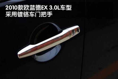 三菱2010款歐藍(lán)德EX 3.0L車型的前大燈采用鷹眼式設(shè)計(jì),并且?guī)в兴阶詣?dòng)調(diào)節(jié)功能和側(cè)向輔助照明功能。與歐藍(lán)德EX其他排量不同的是,3.0L車型的前霧燈和前臉周圍都帶有鍍鉻裝飾,這一點(diǎn)與EVO X非常相似。另外,歐藍(lán)德EX 3.0L的前保險(xiǎn)杠底部配備了護(hù)板。