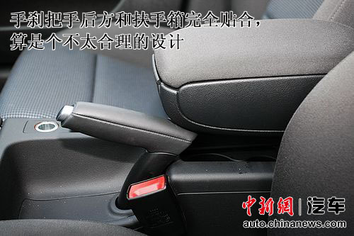 扶手箱的容量和擱手的舒適性還是值得一提的,但那個(gè)看似很個(gè)性的“7”字形手剎因?yàn)榘咽趾蠓胶头鍪窒渫耆N合,導(dǎo)致拉起來(lái)的時(shí)候手腕會(huì)和扶手箱別著勁,算是個(gè)不太合理的設(shè)計(jì)。
