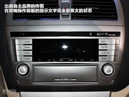 在這里我們不能不說的一點(diǎn)是,自主品牌音響操作界面居然全部是英文顯示。雖然我們不拒絕向老外學(xué)習(xí)他們的經(jīng)驗(yàn),但是作為國(guó)內(nèi)自主的車型難道還要入老外的鄉(xiāng)隨老外的俗嗎?