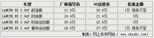 據(jù)經(jīng)銷商透露,店內(nèi)在售LANCER EX開始加大優(yōu)惠促銷幅度。兩款優(yōu)惠幅度較大的車型均有現(xiàn)車,且顏色較全,在原價基礎(chǔ)上最高優(yōu)惠30000元,而需預(yù)訂的低配及高配兩款車型也有萬元的優(yōu)惠,加上商家贈送免費保養(yǎng)或保險等,現(xiàn)在購買三菱LANCER EX比較超值。