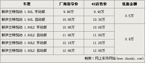 據(jù)北京現(xiàn)代經(jīng)銷商處銷售人員介紹,新伊蘭特悅動(dòng)全系車型最高優(yōu)惠9000元。1.6L車型經(jīng)5000元優(yōu)惠后全系入門級(jí)的1.6L GL手動(dòng)版的售價(jià)為9.48萬元,是全系的最低價(jià)格。銷售人員還介紹,1.6L車型現(xiàn)車充足,而1.8L車型店內(nèi)現(xiàn)車有限顏色不全,欲購買無現(xiàn)車的1.8L車型消費(fèi)者需交納3000元現(xiàn)金,等一周后可提車。