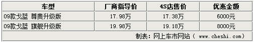 09款戈藍(lán)升級版主要是在原有車型的基礎(chǔ)上,對配備及價格進(jìn)行優(yōu)化,尊貴升級版較原有車型新增折疊鑰匙和定速巡航等配備,旗艦升級版較原有車型,取消了方向盤切換檔功能,增加了折疊鑰匙、定速巡航、副駕座電動調(diào)節(jié)功能、胎壓偵測系統(tǒng)以及采用10輻動感鋁圈等配置。另外,旗艦運(yùn)動版更將原有8喇叭音響升級為12音路金屬振膜立體聲音響,為用戶營造更豐富的影音體驗。(郝俊)