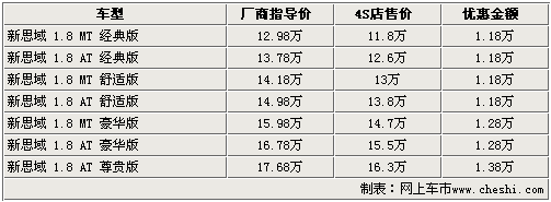 現(xiàn)售的思域是今年初推出的改款車型,在經(jīng)過19項(xiàng)之多的技術(shù)改進(jìn)后,新思域整體的性價(jià)比有了一定程度提升。新裝備的F1賽車的換檔撥片以及全新三幅多功能方向盤更突出了新思域的運(yùn)動感,讓駕駛者更能體會駕馭的樂趣。目前根據(jù)網(wǎng)上車市價(jià)格監(jiān)測系統(tǒng)顯示,新思域的優(yōu)惠較大,目前購買新思域的消費(fèi)者最高可享受1.39萬的現(xiàn)金優(yōu)惠。具體行情如下: