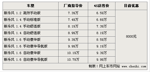 據(jù)4S店銷售人員介紹:目前雪佛蘭新樂風全系優(yōu)惠達8000元,較之前優(yōu)惠幅度持平。1.2車型目前無現(xiàn)車,預訂需等1-3周左右。由于1.2升較小的排量與新樂風略大的車身配比并不十分完美,所以選擇1.4升排量車型消費者較多,同時現(xiàn)車也非常充足,顏色較齊全。1.6升車型目前現(xiàn)車較少,顏色也不夠齊全,銀色車型較多,預定需等待1-2周時間。