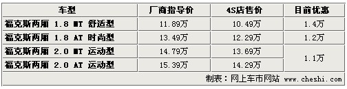 據(jù)4S店銷售人員介紹:目前?怂箖蓭1.8升兩款車型現(xiàn)車較充足,顏色齊全,手動(dòng)擋車型目前優(yōu)惠1.4萬(wàn)元,優(yōu)惠后僅為10.49萬(wàn)元,1.8升自動(dòng)版車型優(yōu)惠1.2萬(wàn)元,優(yōu)惠后價(jià)格售12.29萬(wàn)元。2.0升車型目前現(xiàn)車較少,顏色也不齊全,幾乎全部需要預(yù)訂,訂車需等待一個(gè)半月時(shí)間,目前優(yōu)惠1.1萬(wàn)元。由于2.0升車型銷量較少,所以廠家排產(chǎn)量也非常小,等待時(shí)間也較長(zhǎng)。如果您對(duì)動(dòng)力性要求十分高,推薦2.0升手動(dòng)版車型,如果您作為代步使用,建議購(gòu)買1.8升車型。