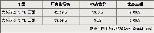 吉普大切諾基是吉普家族中極具個性的一款大尺寸車型,在推出3.7L排量車型后,消費者的選擇空間更大,同時帶給駕乘者完全不同的駕駛體驗。根據(jù)網(wǎng)上車市價格監(jiān)測系統(tǒng)顯示,目前大切諾基的售價最高優(yōu)惠5.69萬元,具體車型以及價格如下: