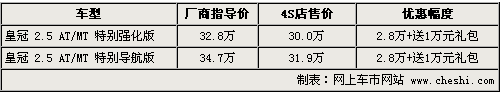 豐田皇冠自引入國(guó)內(nèi)以來(lái),在中高級(jí)豪華轎車行列中擁有較好的口碑。作為一汽豐田旗下的旗艦車型,皇冠將迎來(lái)一次全面的改款,以應(yīng)對(duì)同級(jí)車的競(jìng)爭(zhēng)。全新的外觀以及將新推出一款4.3排量等諸多亮點(diǎn)使其成為最受矚目的車型之一,同時(shí)現(xiàn)款車型也出現(xiàn)了較大幅度的優(yōu)惠,具體行情如下: