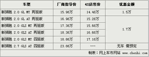 據(jù)銷售人員介紹,目前全系車型最高可優(yōu)惠1.7萬,其中2.0兩驅(qū)低配車優(yōu)惠1.5萬元,2.0兩驅(qū)高配車型均可優(yōu)惠1.7萬元,現(xiàn)車目前只有黑色。銀色以及鈦銀色,其他顏色需要預(yù)訂。對于一直傳言的獅跑全新?lián)Q代車型,銷售人員介紹,目前并沒有具體的消息。