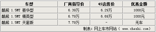 酷熊作為長城汽車在市場上推出的第三款轎車產(chǎn)品,憑借極具個性的造型和寬大的內(nèi)部空間,使很多消費者都對其非常感興趣。新車價格分別為豪華型6.39萬元、精英型6.79萬元,天窗版7.79萬元。近日,網(wǎng)上車市網(wǎng)站了解到,長城汽車4S店處的天窗版酷熊仍然是有價無車的狀態(tài),其他兩款車型有現(xiàn)車銷售,可以給出千元的優(yōu)惠。具體詳情如下: