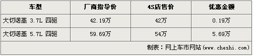 據(jù)經(jīng)銷商銷售人員介紹,大切諾基3.7L車型的優(yōu)惠金額僅為1900元,而高排量的5.7L車型優(yōu)惠金額達到了5.69萬元,達到了全系的最高。在售的Jeep-大切諾基共分為3.7L四驅(qū)和5.7L四驅(qū)兩個車型。3.7L四驅(qū)型經(jīng)1900元優(yōu)惠后,售價降為了42萬元。而排量稍大的5.7L四驅(qū)型經(jīng)5.69萬元優(yōu)惠后,售價降為了54萬元。