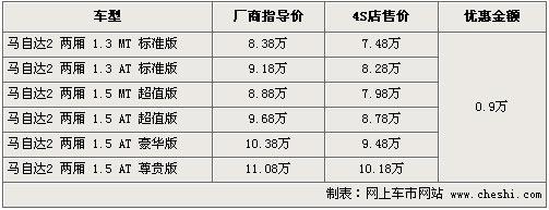 目前筆者了解,馬自達(dá)2兩廂車型最高可優(yōu)惠現(xiàn)金9000元,現(xiàn)車方面主要有銀色、灰色等,顏色不太齊全,像紅色等比較受歡迎的車型還需要預(yù)訂。優(yōu)惠后售價(jià)最低僅為7.48萬,在全系車型中,超值版性價(jià)比較高,推薦消費(fèi)者可以適當(dāng)考慮。