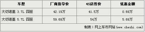 據(jù)經(jīng)銷商銷售人員介紹,大切諾基3.7L車型的優(yōu)惠金額僅為6900元,而高排量的5.7L車型優(yōu)惠金額達到了5.69萬元,達到了全系的最高。在售的Jeep-大切諾基共分為3.7L四驅和5.7L四驅兩個車型。3.7L四驅型經(jīng)6900元優(yōu)惠后,售價降為了41.5萬元。而排量稍大的5.7L四驅型經(jīng)5.69萬元優(yōu)惠后,售價降為了54萬元。