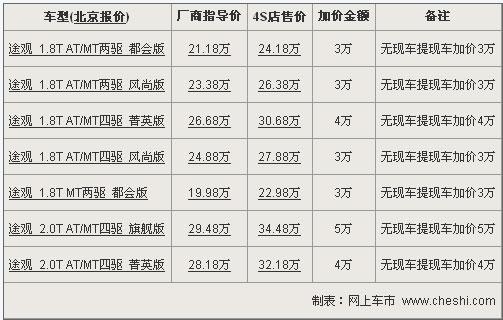 大眾途觀Tiguan齊加價(jià) 國產(chǎn)加5萬 進(jìn)口加1.3萬