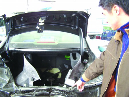 當(dāng)著記者面,叢經(jīng)理解釋說,“ 后圍”是中空鋼結(jié)構(gòu),和車體焊接在一起,外面是保險(xiǎn)杠,不是易損件,因此公司并無(wú)備件。關(guān)于于進(jìn)英的那輛待修車,其他配件都有,就是沒有這個(gè)“后圍”。2日上午10時(shí),上海方面就此剛與他溝通過,他也沒得到任何承諾。