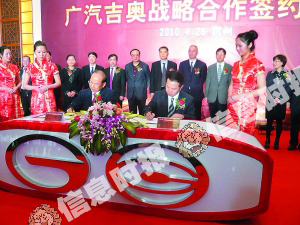 繼重組長豐、牽手菲亞特之后,廣汽集團(tuán)再次出手,將浙江吉奧收至旗下,雙方昨日在杭州簽下戰(zhàn)略合作協(xié)議。根據(jù)協(xié)議,廣汽集團(tuán)將以貨幣為主出資,吉奧汽車以其汽車產(chǎn)業(yè)相關(guān)資產(chǎn)出資,共同將原吉奧汽車相關(guān)資產(chǎn)整合成為一家廣汽集團(tuán)與吉奧汽車股比為51:49的合資公司。簽約儀式之上,廣汽集團(tuán)副董事長、總經(jīng)理曾慶洪明確表示:“廣汽集團(tuán)將保留吉奧現(xiàn)有經(jīng)營管理層!