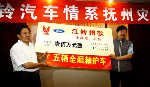 中新網(wǎng)6月25日電 在江西等地發(fā)生的嚴重洪澇災害,造成了巨大的人員財產(chǎn)損失,牽動著國人的心。江鈴汽車股份有限公司全體員工心系災區(qū)人民,在第一時間作出反應,得到福特汽車公司和江鈴集團的支持,迅速組織賑災捐贈,在公司董事長王錫高指示下,公司緊急捐贈5輛災區(qū)急需的福特全順救護車并捐款100萬元人民幣,總計200萬元的款物給受災最嚴重的撫州洪澇災區(qū)。