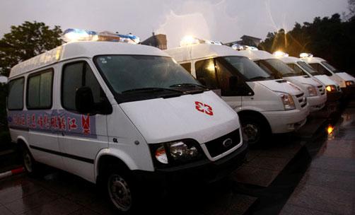江鈴緊急趕制的5輛福特全順救護車一到達災區(qū),立即被派往受災前線救護受災民眾