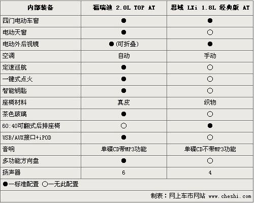 在內(nèi)部裝備上,兩款車各有特點。四門電動車窗、電動可調(diào)外后視鏡均為兩款車標配。由于福瑞迪是頂配車型,所以定速巡航、真皮座椅、自動恒溫空調(diào)、電動天窗、智能鑰匙等配置較為齊全,而一鍵式點火在同級車車型中也比較少見。但單碟CD、后排座椅不可調(diào)相比缺少了一定的檔次。思域1.8經(jīng)典型雖然并未配備天窗,座椅為織布材料,后排座椅沒有帶中央扶手,但是后排座椅可以60:40可調(diào),這樣整車在空間的靈活性上就比較大,相比更加方便家庭使用。