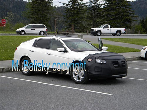 從諜照上看,雅閣Crosstour的車(chē)頂線條與在本屆紐約車(chē)展上亮相的謳歌ZDX概念車(chē)非常相似,車(chē)頂擺脫了傳統(tǒng)的“兩柱式”設(shè)計(jì),A柱與C柱被視覺(jué)沖擊感極重的一體式“溜背”車(chē)頂設(shè)計(jì)所取代。雖然此設(shè)計(jì)創(chuàng)新力極佳,但是后尾急降的弧度不知道會(huì)不會(huì)另后排乘客感覺(jué)到頭部空間不夠。