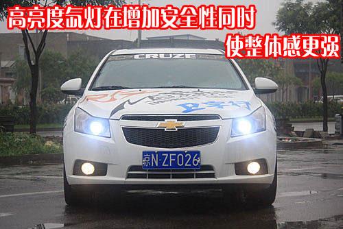這個(gè)“街跑”科魯茲主要針對(duì)外觀進(jìn)行了一系列改裝。首先,它的車(chē)頭部分最為顯著的改變?cè)谟谠黾恿烁吡炼鹊碾瘹獯鬅簦乖揪季加猩竦摹苞椦邸备涌鋸,不僅看起來(lái)漂亮,而且提高了夜間行駛安全性。