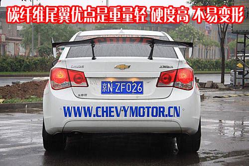 引擎蓋上的改變顯而易見(jiàn),增加了大面積的貼畫(huà),包括拉力賽中黑白相間的旗子造型。在細(xì)節(jié)方面,前輪眉處標(biāo)有CHEVROLET雪佛蘭的標(biāo)語(yǔ),與車(chē)頭“金領(lǐng)結(jié)”遙相呼應(yīng);前風(fēng)擋上CRUZE的字樣是專(zhuān)門(mén)為這款車(chē)而打造,在字的兩側(cè)分別刻有“金領(lǐng)結(jié)”的標(biāo)志。