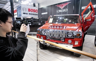 記者看到,展臺(tái)咨詢臺(tái)也變成了銷售臺(tái)。銷售員告訴記者,不管是奔馳商務(wù)車還是悍馬,雖然價(jià)格都在200萬元以上,但銷量非常好,每天最少也能賣出5輛。