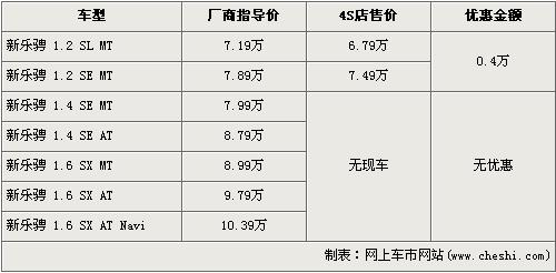 據(jù)北京雪佛蘭經(jīng)銷店銷售人員介紹,雪佛蘭新樂騁分為1.2L、1.4L、1.6L三種排量,售價區(qū)間為7.19萬元-10.39萬元。近期購買新樂騁只能夠買1.2L排量的車型,并且購買新樂騁的消費(fèi)者可以得到現(xiàn)金4000元的優(yōu)惠,但是現(xiàn)車比較緊張,數(shù)量較少。1.4L和1.6L排量均沒有現(xiàn)車,所以不再此次優(yōu)惠的隊列中。