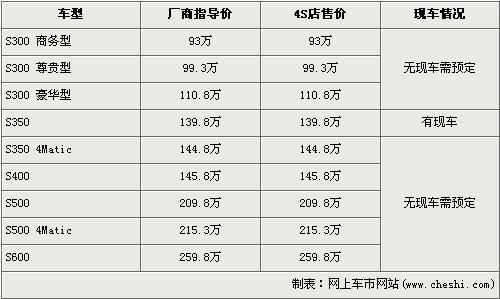 據(jù)北京奔馳4S店銷售人員介紹,剛剛上市的奔馳新S級S350L車型店內(nèi)有現(xiàn)車,欲購買的消費者可以直接從店內(nèi)提現(xiàn)車。而其他的大部分新S級車型店內(nèi)無現(xiàn)車,欲購買的消費者需交10萬訂金約等1個月后可提車。