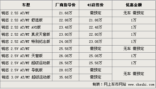 銳志是一汽豐田非常熱銷的一款后驅(qū)中級(jí)轎車,自上市到現(xiàn)在,無論從性能還是外觀方面都得到消費(fèi)者的認(rèn)同,尤其是潛在的改裝魅力讓很多喜歡漂移的車友非常鐘情于銳志。目前銳志優(yōu)惠現(xiàn)金1萬元,有部分現(xiàn)車供應(yīng),具體行情如下: