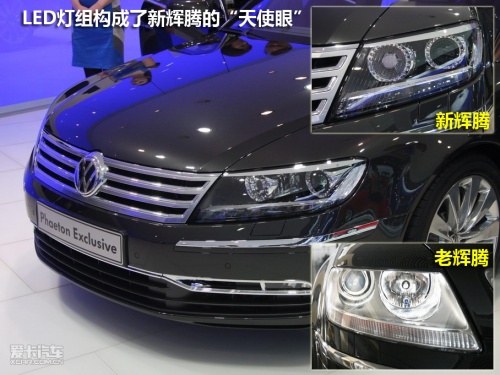 新輝騰的外形改變主要集中在車的前臉,原本溫和的進氣格柵被四條硬朗的鍍鉻橫杠所取代。顯得有些平庸的頭燈也被改為看上去有些“兇狠”的帶LED“天使眼”的氙氣大燈。不知你的感覺怎么樣,新前燈離遠看有點像人造鉆石,第一眼看到我感覺有些山寨,一直低調(diào)的輝騰看上去好像是要張揚一把。