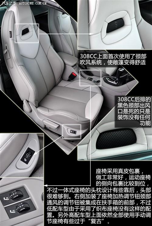 座椅系統(tǒng)是308CC的一大特色,被稱為“空氣圍脖”的頸部出風系統(tǒng)被首次應(yīng)用在308CC上面,這對喜好敞篷駕駛的朋友來說是非常幸福的事情,不過在國外可是只有高配車型才配備哦!