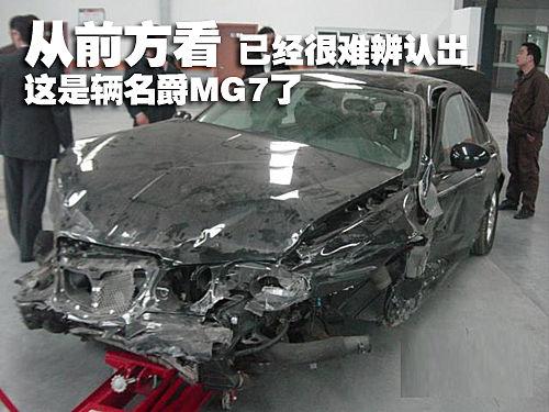 當(dāng)我們看見這輛被拖回來(lái)的名爵MG7時(shí),因?yàn)檐囕v受損比較嚴(yán)重,如果不看車尾從車頭方向看上去,已經(jīng)很難辨認(rèn)出這到底是一輛什么車了。
