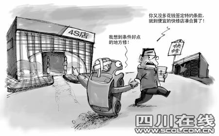 車輛出險后,車主通常愿意選擇到信譽度較高的4S店修理,但由于費用相對較高,保險公司則更傾向于低廉的普通修理廠。為此,車主和保險公司之間的糾紛時有發(fā)生。如何權衡?近日有消息傳出:保監(jiān)會已批準8家保險公司使用“指定專修廠特約條款”。這意味著,如果車主要自己選擇修理廠,就必須在買車險的同時簽訂一份特約條款,同時還要多交保費。這一消息引起消費者的廣泛關注,不少車主認為這個做法屬于保險公司變相漲價的行為。