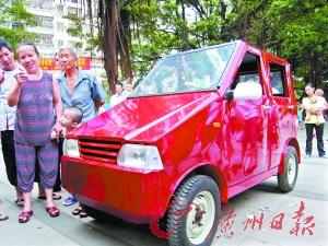 “做這玩意兒主要出于愛好!绷糁鴾\平頭的湖北黃石人彭易然坦然而得意地告訴記者,7年來一直在東莞長安霄邊從事送水、送氣的他,很想擁有一輛自己的轎車,但是高昂的車價(jià)使得他望洋興嘆。于是在去年9月,僅有小學(xué)學(xué)歷的他突發(fā)奇想“自己做一輛”。